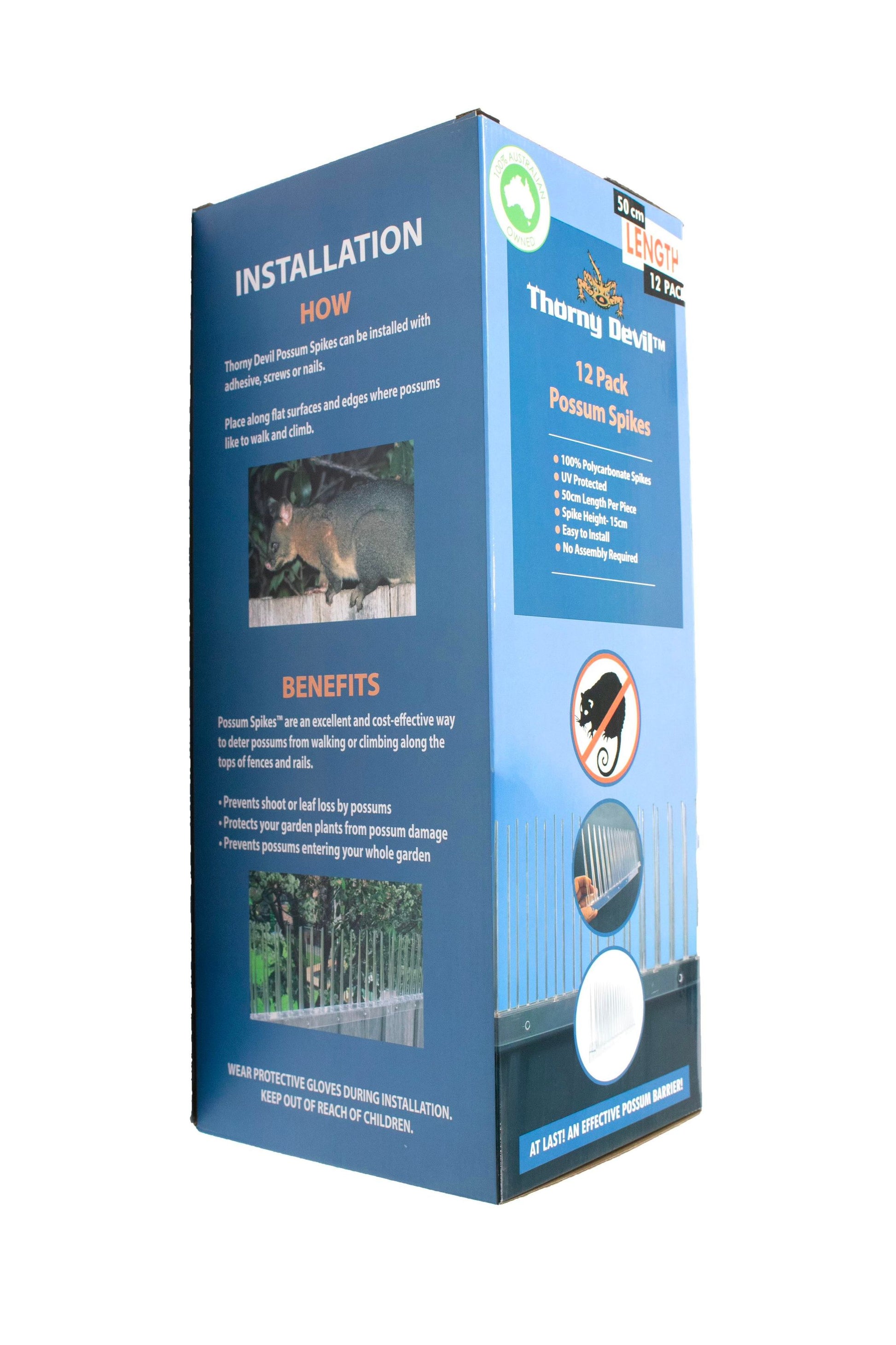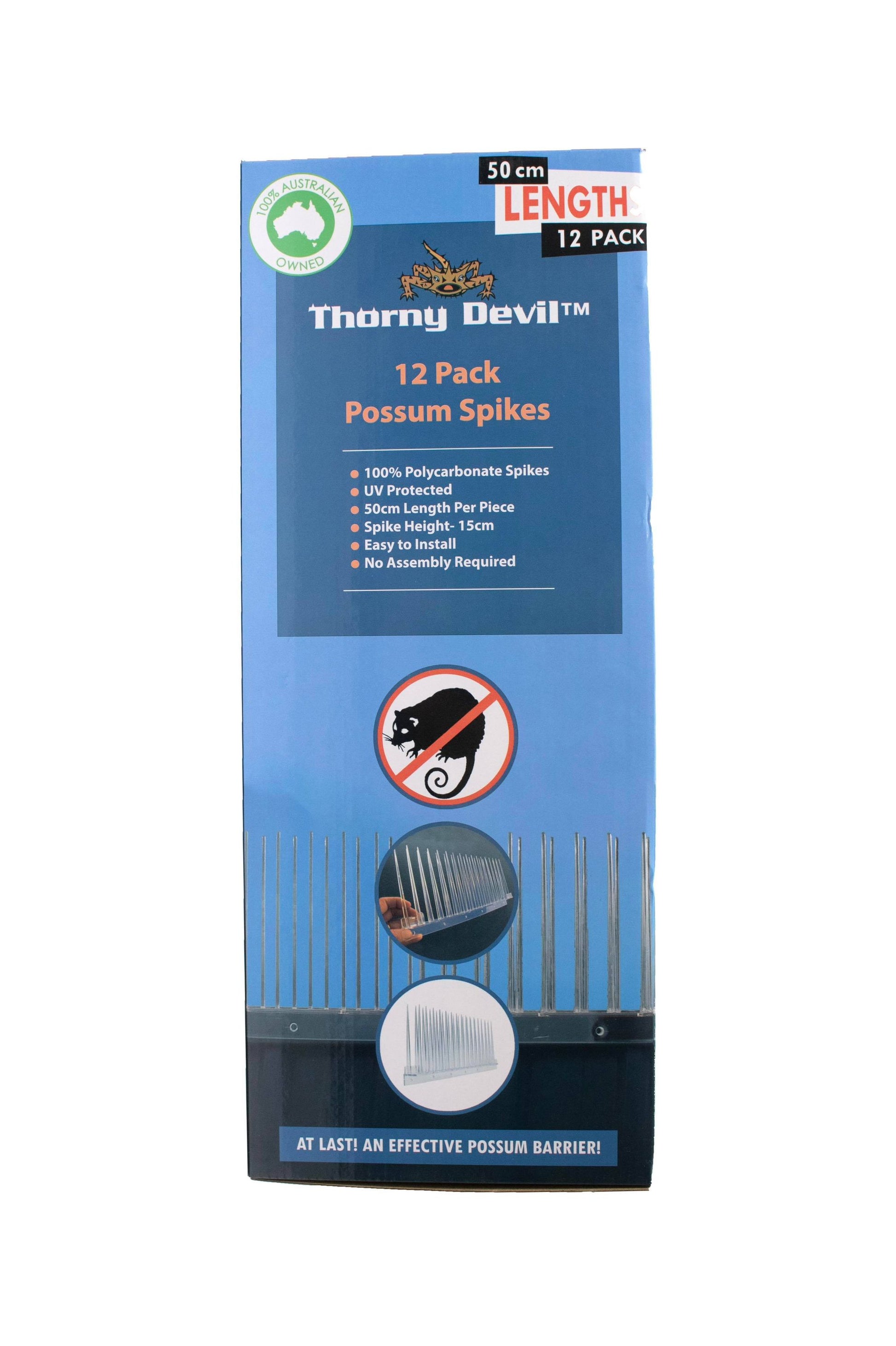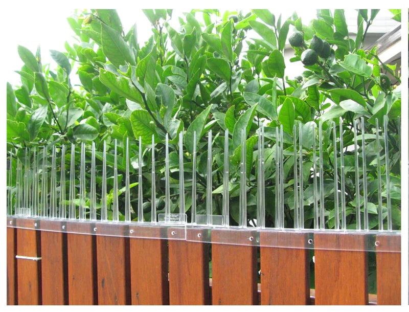 A UV-Resistant Polycarbonate cost-effective solution for repelling possums and cats in your backyard. The clear nature of these spikes are more visible appealing.